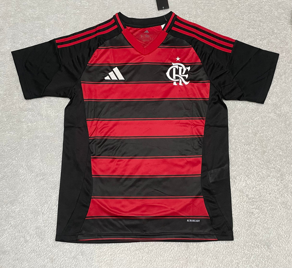 Desenvolvida em tecido leve e respirável, oferece conforto, excelente caimento e liberdade de movimentos, sendo ideal para dias de jogo, estádio, treinos leves ou uso casual. O escudo do Flamengo com estrela reforça o espírito vencedor e a identidade de quem vive o Mengão intensamente.