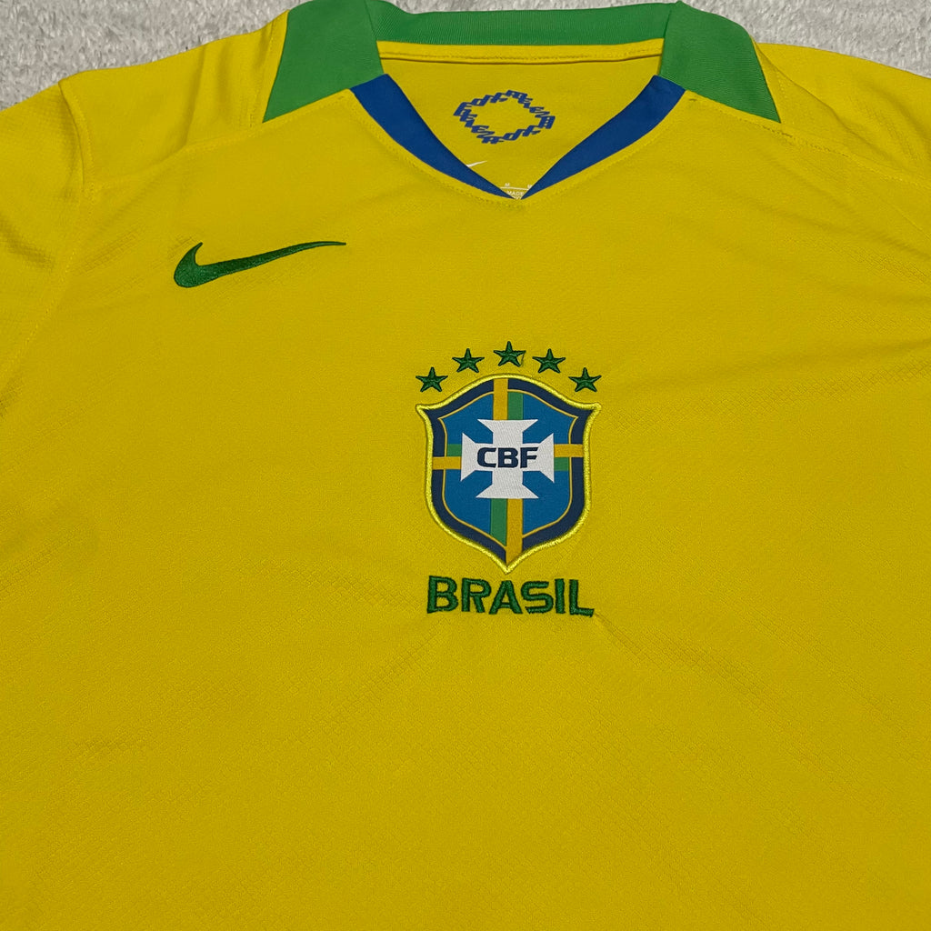 Produzida em tecido leve e respirável, garante conforto, ótimo caimento e liberdade de movimentos, sendo perfeita tanto para dias de jogo quanto para o uso casual. O escudo da CBF com estrelas reforça o espírito campeão que atravessa gerações.